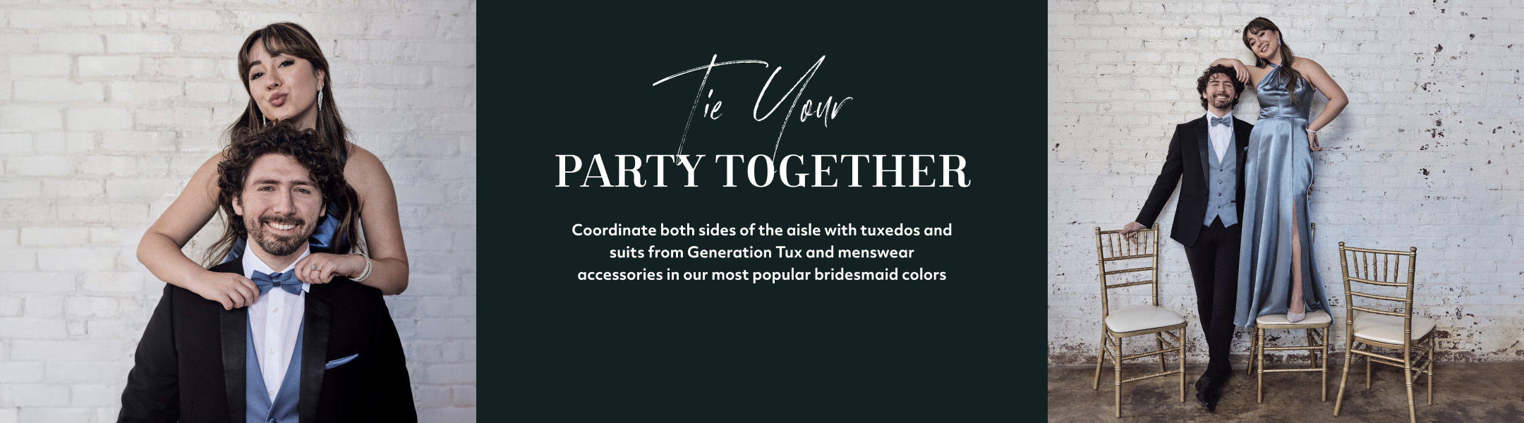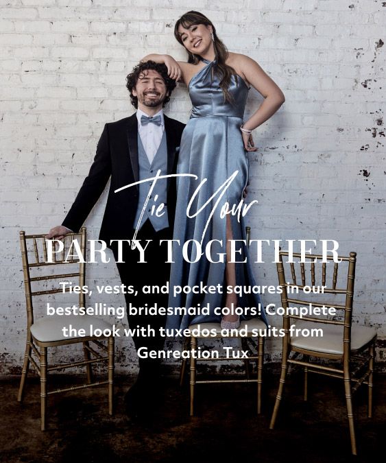 Coordinate your wedding party with ties, vests, and pocket squares in exclusive David’s colors